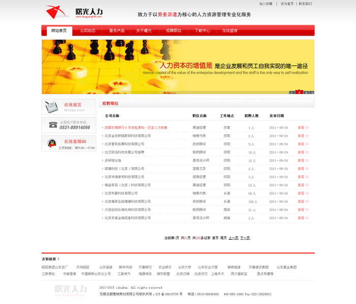 公司是濟南市較早從事勞務派遣專業服務的企業之一,公司長期以來遵循“人力資本的增值是企業發展和員工自我實現的唯一途徑”的經營理念,堅持“誠信為本,客戶至上,讓用人單位與員工在人力資源管理過程中實現雙贏”的企業宗旨,致力于以勞務派遣為核心的人力資源管理專業化服務。公司服務的主要客戶涉及政府、金融、高校、建筑、IT、商業、食品、服務業等十幾個行業的幾十家知名企事業單位。