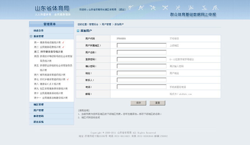 為及時掌握各級體育行政部門、單項體育協會、行業體育協會、人群體育協會等有關單位開展群眾體育工作情況,充分發揮群眾體育基礎數據統計在把握群體事業發展規律、提高管理部門決策水平、促進群體事業科學、健康發展的重要作用,完成中國體育事業年報中群眾體育數據統計的工作任務,受山東省群體處委托,白菜網絡開發了本套群眾體育基礎數據統計分析系統。