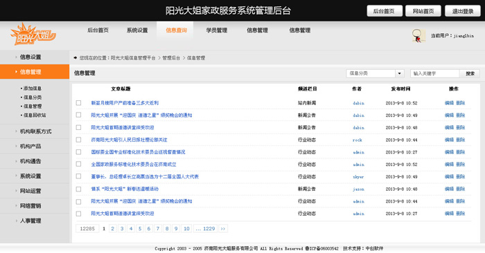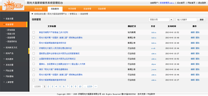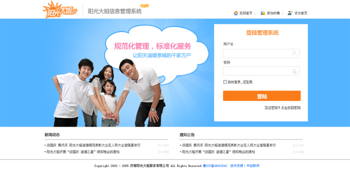 濟南陽光大姐成立于2001年10月,是濟南市婦聯創辦的家政服務機構,主要為下崗失業人員、農村富余勞動力、大中專畢業生等生活困難、就業困難群體提供教育培訓、就業創業扶持、綜合素質提升等方面的服務。2004年成立有限責任公司,實現了由行政推動向市場推動的轉變。成立以來,共培訓16萬人,安置就業100萬人次,為90萬戶家庭提供了服務,為家政服務員創造收入8億元。