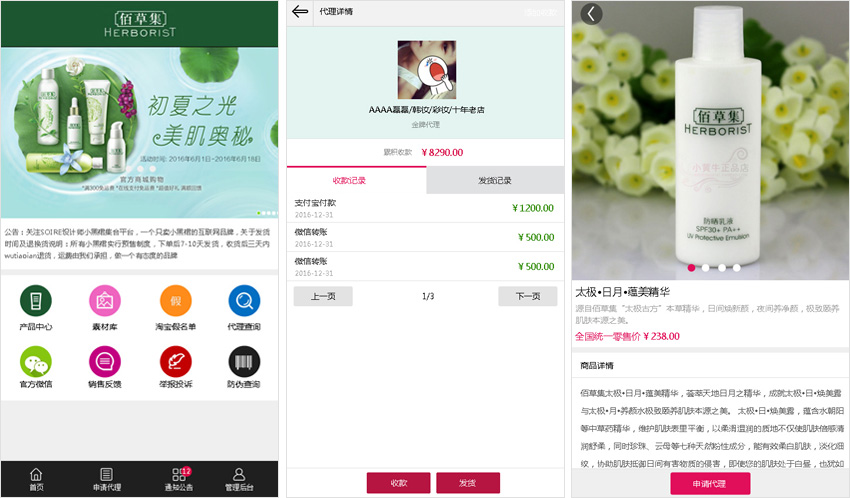 針對(duì)微商的微信多級(jí)分銷商管理系統(tǒng),清晰的等級(jí)制度,完善的收款及發(fā)貨管理等實(shí)用功能,代理授權(quán)書生成、產(chǎn)品真?zhèn)尾樵儭⒔?jīng)銷商等級(jí)自定義、產(chǎn)品展示、經(jīng)銷商申請(qǐng)與審核,完全根據(jù)微商定制的管理系統(tǒng)