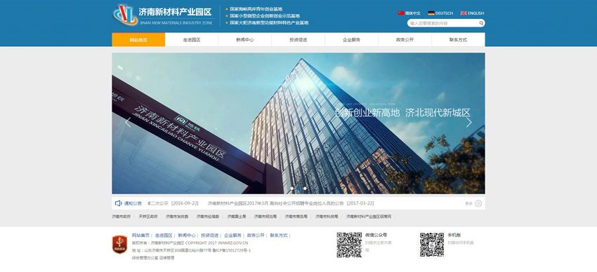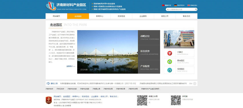 濟南市新材料產業園區是規劃建設濟南新區的核心區,是濟南市新型城鎮化建設中的產城融合試點,是“國家火炬濟南新型功能材料特色產業基地”,“國家級海峽兩岸青年創業基地”,“國家級小微企業創新創業示范基地”。園區以國家鼓勵發展的新材料產業為主導,同時重點發展光電通訊產業、納米材料、先進功能材料、智能制造產業、新能源材料及汽車、健康醫療產業、文化旅游產業等戰略新興產業,是山東省唯一的專業新材料產業園區。