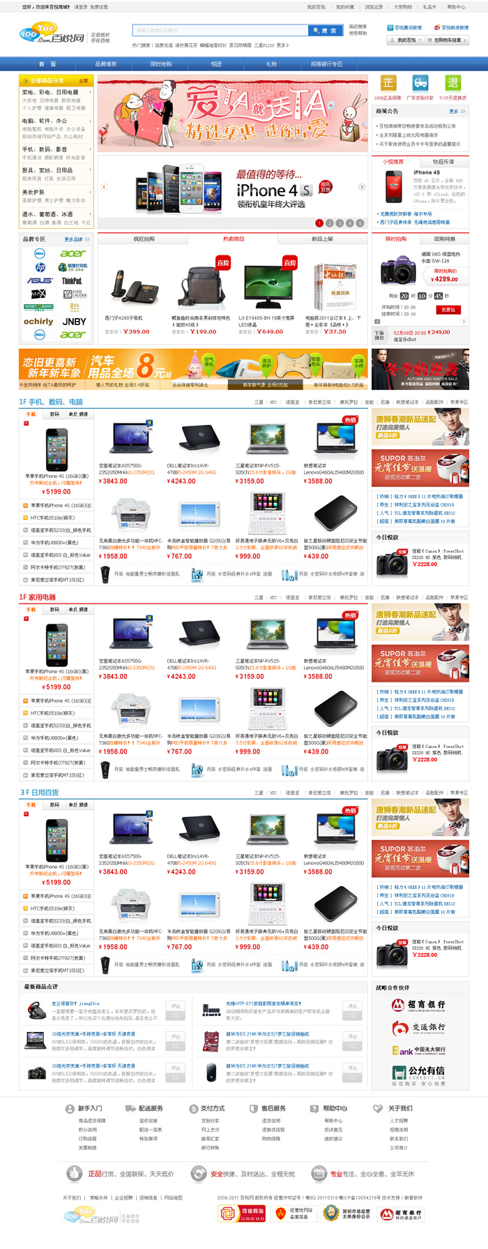 百悅網(wǎng)立足深圳,輻射全國(guó),以獨(dú)有的發(fā)展特色、優(yōu)質(zhì)的商品服務(wù),與廣東移動(dòng)、工商銀行、農(nóng)業(yè)銀行、交通銀行、招商銀行等多家排名世界500強(qiáng)的力企業(yè)建立起長(zhǎng)期、良好的合作關(guān)系。