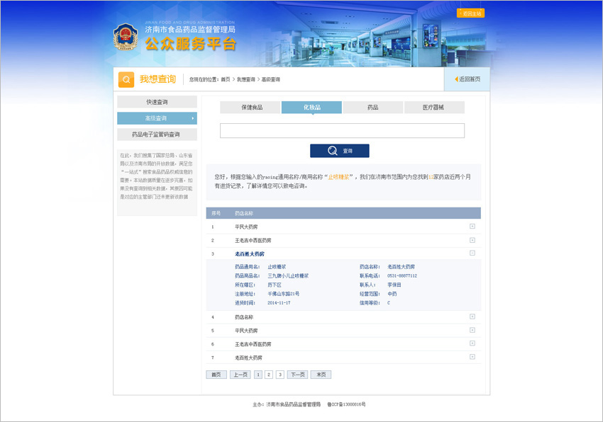 濟南市食品藥品監(jiān)督局公眾服務平臺