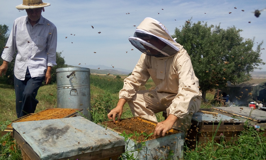 蜂箱當(dāng)桌子,席地而坐,蜂農(nóng)老章與我們攀談起來,說起養(yǎng)蜂,他已經(jīng)是第三代養(yǎng)蜂人了,對于這個差事,老章說真得是辛苦,可是良心不能丟,絕不會造假。這么多年的老顧客的信任,不能讓人家說成老騙子。