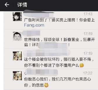 比如,你不小心手滑在這條廣告下面點了贊,此后你好友參與的內容都會刷爆你,如果不幸加了大量營銷達人,你會收到很多諸如“要買房上XX,你會愛上”“世界XX,冠領全球,新春置業,狂暴開啟,詳情請點XXX”……