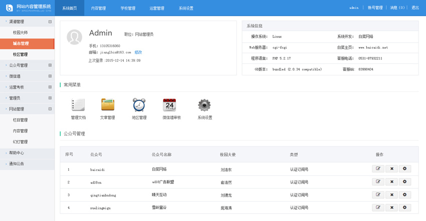 網站的后臺管理系統操作方便、功能強大。白菜網絡擁有自己的建站系統,可以根據網站的頁面設計,制作出操作簡單、功能完全相符的后臺管理系統,方便客戶隨時隨地管理網站,同時保證網站的安全性。